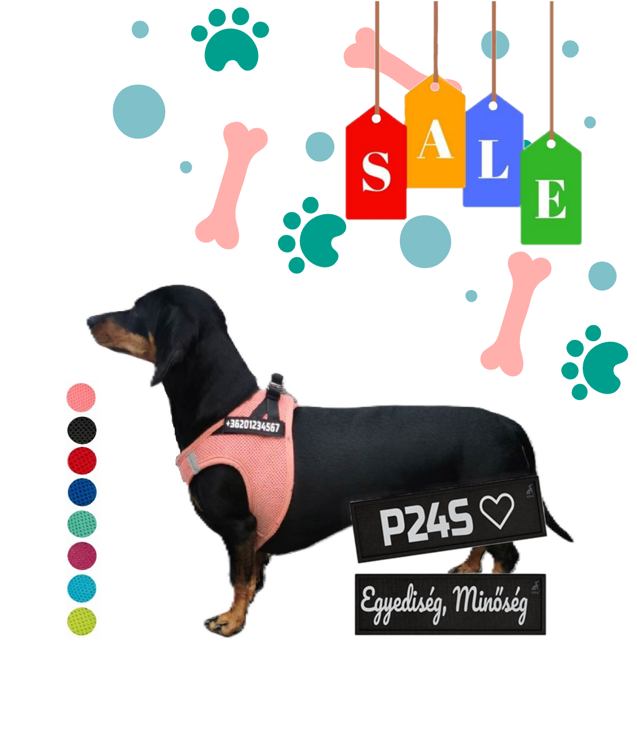 Szeretnéd, ha a Te kedvenced lenne a környék legmenőbb kutyusa? A P24S® SMART hámmal ez gyerekjáték! A tépőzáras feliratot kedvedre cserélheted - válassz vagány betűtípusokat és színeket, hogy kitűnjetek a tömegből. Legyen az "Szupersztár", "Legjobb Barát" vagy bármi más, ami illik kutyusod személyiségéhez!